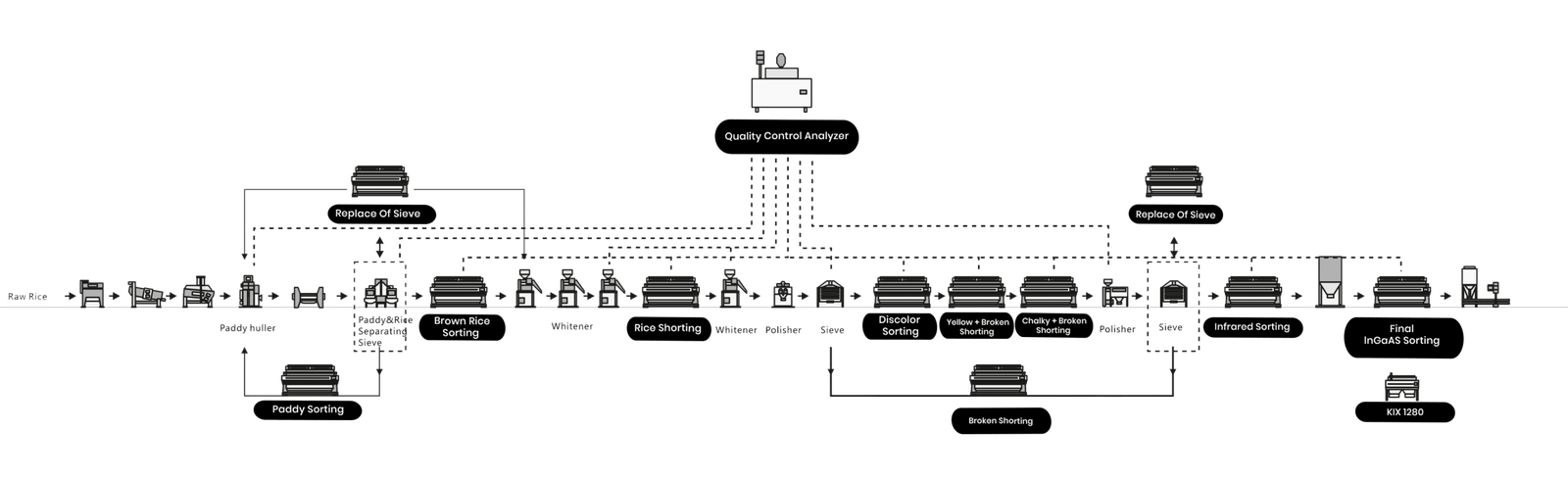 Our Excel Color Sorters for grain grading and impurity removal, along with COMPTECH screw air compressors and CVCF systems to ensure smooth Sortex operations.